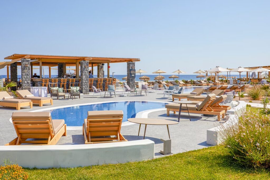 - 7 nights B&B in a double room with whirlpool at the 5 star Sea Breeze Santorini Beach Resort Curio Collection by Hilton